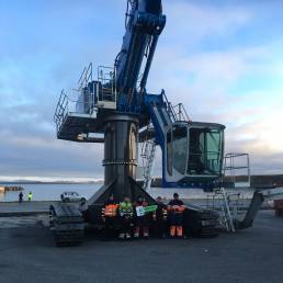 Maskinen erstatter en over 10 år gammel Sennebogen 640 M som har vært benyttet til skipslossing med grabb.