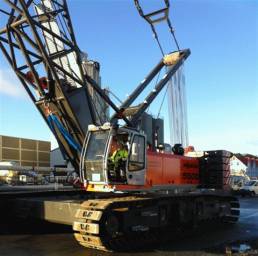 Vi leverte nylig en Sennebogen 680 HD beltekran til firma Entreprenørservice AS ved et anlegg i Oslo. Kranen er utstyrt med 261 kW CAT C9 Acert dieselmotor, robuste 16 kN vinsjer samt teleskop-belteunderstell med 900 mm flatbelter. Hele 59 meter bomlengde er tilgjengelig for kranen. Vi gratulerer Entreprenørservice med nyanskaffelsen.